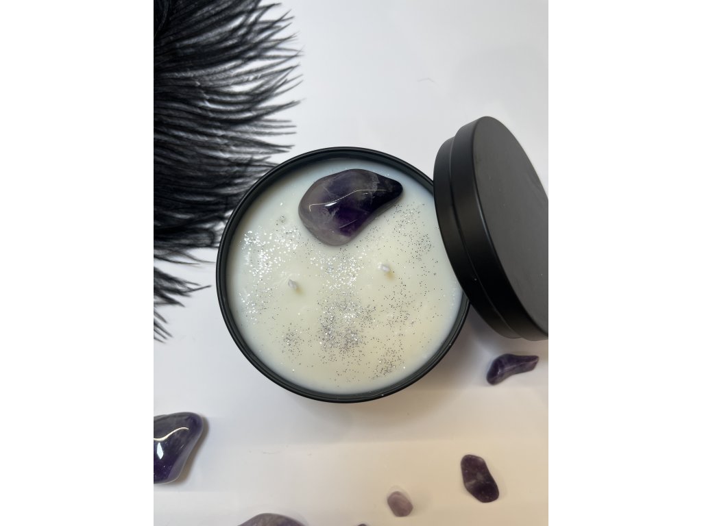 Svíčka zdobená ametystem, kamenem klidu a harmonie, který podporuje vnitřní rovnováhu a uvolnění mysli. Jemná bylinná kombinace mateřídoušky, svěžího bergamotu a zklidňující levandule navozuje pocit pohody, čistí mysl a přináší harmonii do vašeho prostoru.