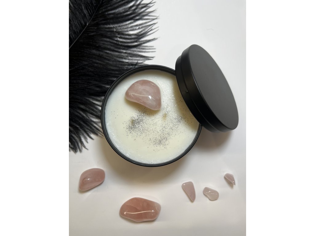 Svíčka zdobená růženínem, kamenem lásky a něhy, který otevírá srdce a posiluje sebelásku a harmonii ve vztazích. Jemná květinová vůně hrachoru se snoubí se sladkou krémovou vanilkou a hřejivými tóny tonky, čímž vytváří smyslnou a romantickou atmosféru plnou něhy, pohody a pocitu bezpečí.